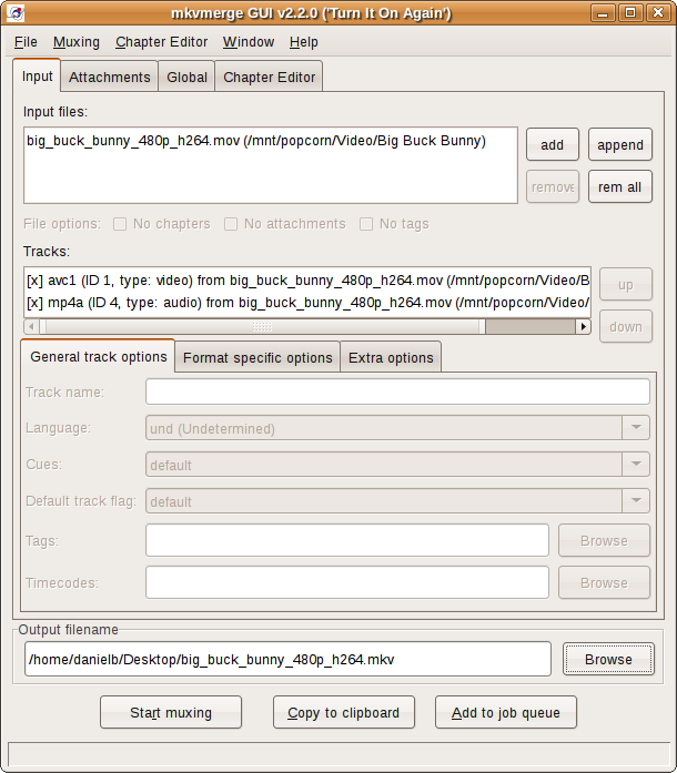 If you want to do the muxing from the command line, the GUI tool offers a Copy to Clipboard button that gives you the command and all of the options that it will do when you press the Start muxing button. The general command is this: