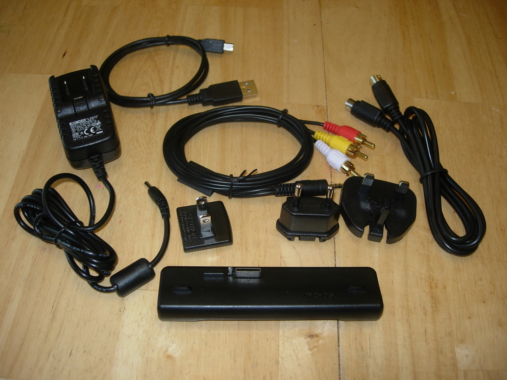 Figure 3. The Mini-Dock comes with a multi-national power adapter, A/V cables and a real, honest-to-goodness USB cable.