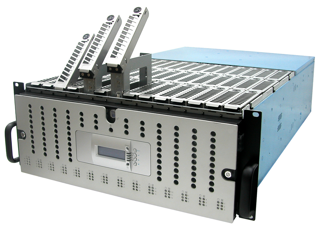 The latest offering from HPC Systems is the HiPerDisk Storage System, the company's highest density SAS/SATA JBOD storage solution for enterprise applications. The HiPerDisk features 42 hot-swap drives in a 4U rackmount enclosure with up to 84TB of storage that will support high-capacity SAS or SATA drives individually or simultaneously, a feature that enables enterprise customers to standardize on one system for all three application data types: transactional, high-bandwidth and reference data. Designed for no active single point of failure, the HiPerDisk features single- or dual-controller modules, each consisting of three mini-SAS (4x) ports. A hot-swap redundant power supply and fans are provided for optimal enterprise reliability.