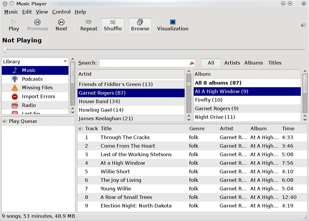 Just as important, I could have included at least five more players. When you consider Audacious, Listen, Quod Libet and Sonata, you realize just how broad the selection of free music players is. However, I selected these either because they are the default players with most distributions or because they have a substantial cult following. For better or worse, they are the most popular music players on the free desktop at the time of this writing.