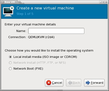 Note that virt-manager provides a wizard for creating new virtual machines on the localhost using local or remote media installations (Figure 1). However, this article focuses on the underlying tools virt-install and virt-clone. These tools offer far more power and flexibility when creating virtual machines.