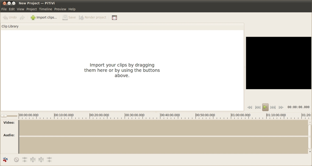 Start PiTiVi by clicking Applications→Sound & Video→PiTiVi. First, let's take a look at the PiTiVi (Figure 1).