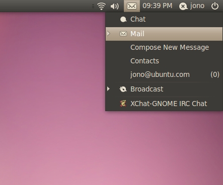 The messaging menu provides a single place in which new information is made available to you. In a default Ubuntu installation, e-mail in Evolution, chat messages in Empathy and tweets in Gwibber are all made available in the messaging menu. In the past year, we also have seen numerous other applications make use of the messaging, such as the XChat-GNOME IRC client and Zimbra. The messaging menu neatly merges all of these different information flows together into one common place on your panel, only ever a click away.