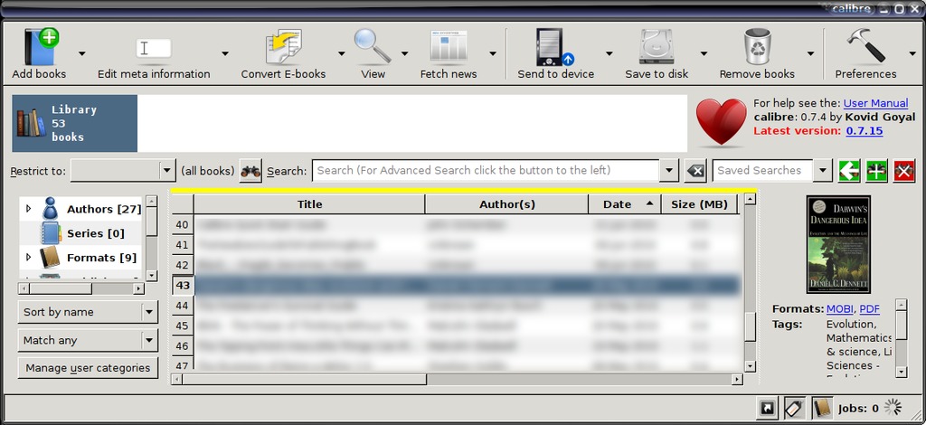 Calibre's project manager Kovid Goyal deserves a big pat on the back (and tips in the tip jar). Not only is the program organized well, the Web site easily navigable, and the installation relatively painless, but the documentation is very comprehensive as well.