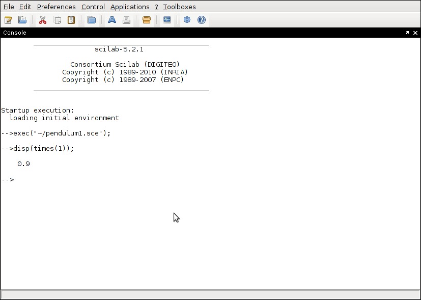 According to theory, the value of a should be given by ((2 * PI)2 / g), where g is the acceleration due to gravity. According to Scilab, the value is: