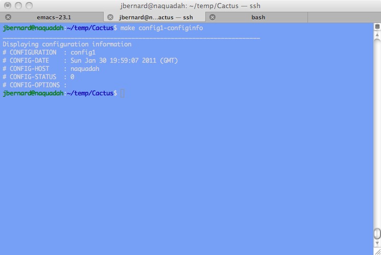 If you ever want to start over, you can try make config1-clean or make config1-realclean. If you are done with this particular configuration, you can get rid of it completely with make config1-delete.