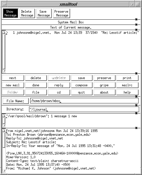 Preston Brown is a sophomore Computer Science student at Yale University in New Haven, CT. He discovered Linux with the earliest TAMU release in late 1992. You can reach him by e-mail at preston.brown@yale.edu.