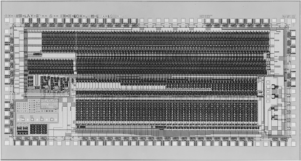 The design example we used to demonstrate these tools was small but not useless. In fact, Figure 7 shows a 32,701-transistor IC measuring 2.71mm by 6.15mm, designed with Magic, that uses building blocks very much like the inverter we just made. (This may sound like a lot of transistors, until you consider that current commercial microprocessors are rapidly approaching 10 million transistors on a chip smaller than 2cm by 2cm.)