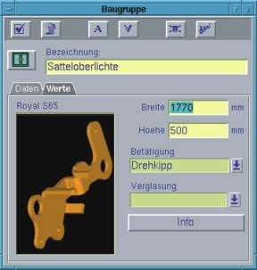 I did a really big project that integrated CAD (computer aided drafting) and PPC (production planning and control) software, and I successfully used the ideas presented above. (See Figure 4 and Figure 5.) The project took more than a year, and the specification changed more than once. The final solution shed another light on the versatility of Tcl: the user is able to define his own components (window frames, automatic actuators, etc.) using Tcl and its object-oriented extensions. This feature was just an offspring of our rapid prototyping philosophy as we simply provided the customer with our own tools.