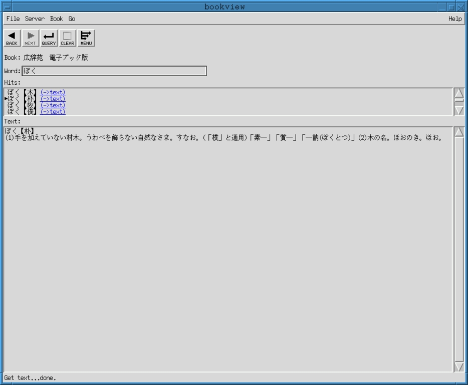 Bookview: a front end to ndtp, a server of Japanese electronic reference books (see Figure 7)