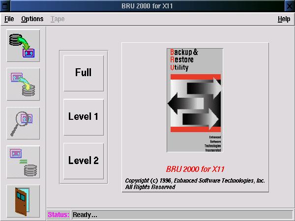 While not the most flashy area of computing, proper backups are essential. BRU 2000 for X11 (xbru) is a user-friendly graphical interface for EST's BRU backup software. It is targeted for users who want to easily back up their computer without having to learn the command-line interface for their backup software. To use the more complex options of BRU 2000, you still need to learn BRU's command-line interface.