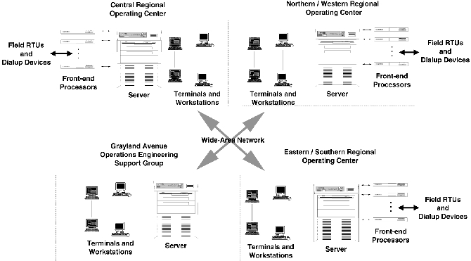 Three regional operating centers, a duplicate center at our Grayland Avenue office, scores of workstations, and many district centers (some connecting via Ethernet, others on demand via PPP/SLIP)