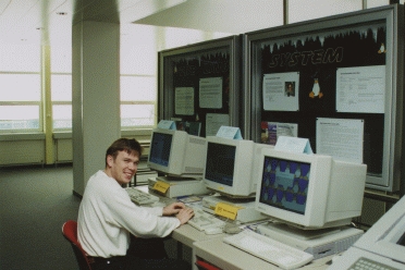 Last summer, Alois Camenzind thought that a small Linux expo would be a good idea. This would enable us to spread information about Linux and its uses—let others know that Linux is a “real” Unix system. After getting the “Okay”, Camenzind contacted employees within the section who had expressed both knowledge and interest in Linux. We formed an unofficial workgroup to prepare the Expo. The main work was producing posters with information about Linux and Linus Torvalds, getting resources (machines), setting up the machines and contacting interested companies for information and products.
