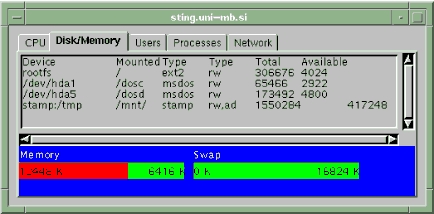 • Disk and memory information (free, used, swap)