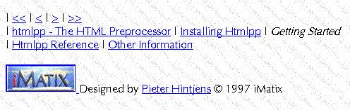 To install and use htmlpp, you need Perl version 4 or 5. Download htmlpp from http://www.imatix.com/ and unpack the .zip file. The package comes with HTML pages describing how to install and use. If you have questions, comments or suggestions, don't hesitate to send me e-mail.