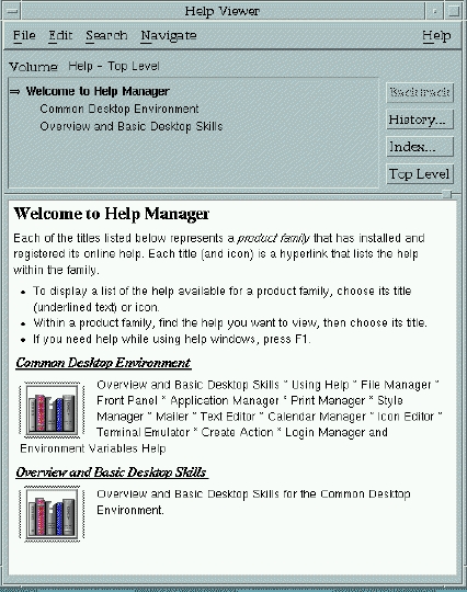 The CDE's front panel is impressive at first sight. Ten frequently used programs and utilities are placed for first priority use. Other, less-used programs are embedded within pop-up menus. The workspace manager is placed front and center, configured with four unique workspaces. An “LED” flashes to indicate a process is in work. A padlock icon launches a session display lock. The panel can be positioned anywhere on the desktop and be minimized or maximized with buttons on the panel ends. The package includes several backgrounds, screen-savers and desktop color schemes, making it easy to customize each workspace according to individual taste.