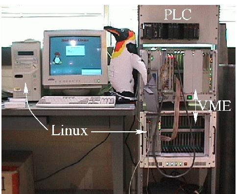 With the decreasing cost of hardware and the flexibility afforded by Linux, we have been planning to use distributed hardware control. Instead of having one workstation linked to all the peripherals, we can deploy several stripped-down computers (hardware servers), equipped with a network card but no keyboard or monitor. Each of these would talk to a subset of hardware, executing commands sent by the main control workstation (controlling client) over the network. For the servers we can use either older, recycled 486-class machines, or even the industry standard PC-104 modules (a miniature PC format composed of stackable modules around 10 cm by 10 cm in size). In this case, the Ethernet becomes our real-world interface.
