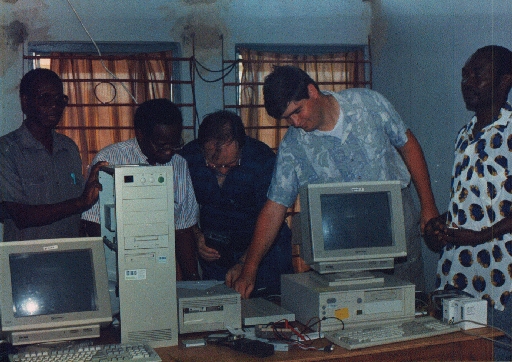 Previous in-house experiences with the UNIX system (SunOS and Sun Solaris) led us to test, within the project, the commercial Solaris 2.4 (x86 version) and Linux. While this version of Solaris required specific hardware components to function on the available (486) PCs, Linux was found to be more flexible than Solaris in terms of hardware compatibility and low memory requirements. On top of that, the possibility of having high-quality free compilers and software applications motivated us to continue using Linux. In 1995, Windows NT was just starting to become popular, so this possibility was not considered. At that time, Linux was also unknown in the Nigerian academic world. The main operating systems available there were MS-DOS and Windows 3.1.