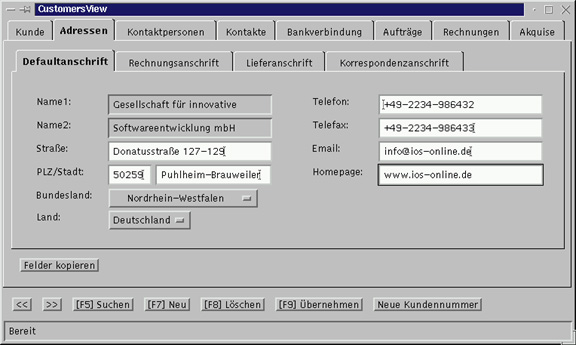 On the plus side, views are available for the customer management module containing, among other things, address management (see Figure 1) and administration of orders modules. Invoicing and financial accounting modules are just being prepared.