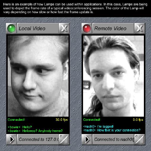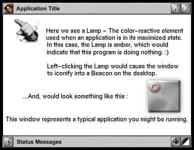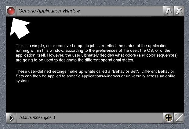 A lamp is a window element in which the color is tied directly to the operational status of the application using that window. Simply put, it is like a status LED for that particular application. As you use the program, its lamp changes color depending upon what is happening and what you'd like it to reflect—CPU usage, program status, etc.