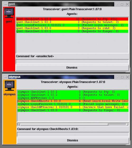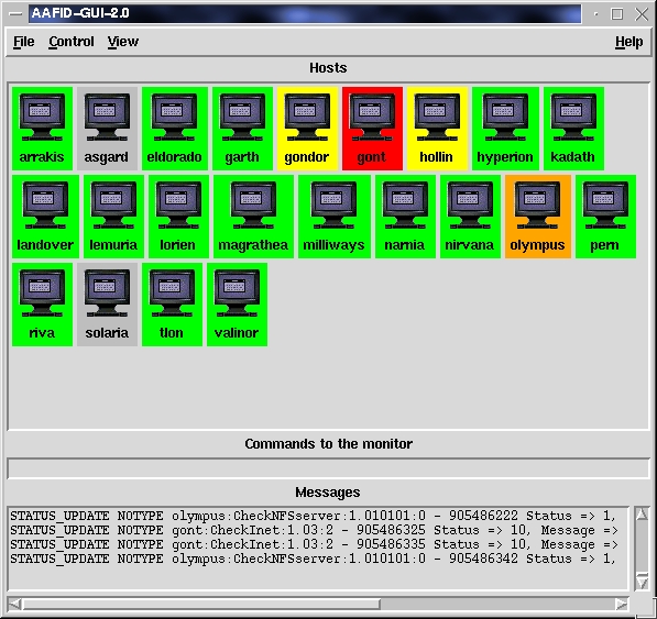 The AAFID group consists of ten graduate and undergraduate students within the COAST laboratory. A prototype implementation (see Figures 3 and 4) can be found on the AAFID project web page at http://www.cs.purdue.edu/coast/projects/autonomous-agents.html.