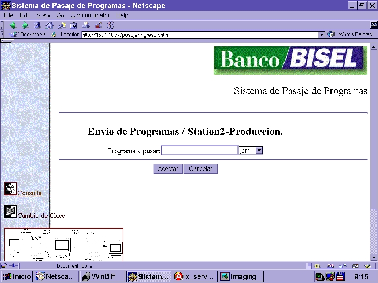 This is done by logging in to the “Sistema de Pasaje de Programas” system and entering the name of the program. At this point, the program is ready to receive an authorization to be sent to the testing environment. Once the authorization is granted, it can effectively be sent to the testing environment.