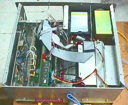 Figure 6 is a photo of the SRA data system during development. It was in this “state” until just a few days before our first test flight on the NASA C-130. Figure 8 is a photo of the data system after packaging. Figure 7 shows the internal organization of the data system as viewed from the top rear. The enclosure is reversed from most rack mounts. We wanted to have ready access to the computer card connections without having to remove the rear rack cover. The only connections on the rear are for the GPS receivers and the battery charger. The black power supply under the data system in Figure 8 is our prime power supply/battery charger.