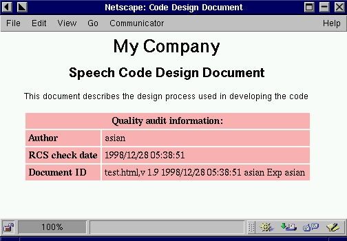 A prettier method is to use JavaScript for display in Netscape to format the page and remove the unwanted $ symbols. The HTML page in Listing 1 forms the front cover to some code documentation, as shown in Figure 2.