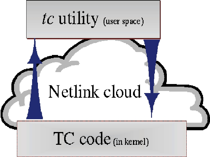 The TC code resides in the kernel and the different blocks can be compiled in as modules or straight into the kernel. Communication and configuration of the kernel code or modules is achieved by the user-level program tc written by Alexey. The interaction is shown in Figure 1. The tc program can be downloaded from ftp://linux.wauug.org/pub/net/ip-routing/iproute2-current.tar.gz. You will need to patch it for glibc, if you are using a glibc-only system. The patches are available in the same directory. Note that the package also includes the ip and rtmon tools.