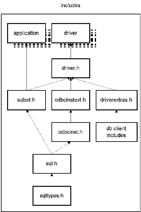 Perhaps the best way to learn how a driver works is to look at some driver code. unixODBC contains a number of such examples. Your source will likely implement driver.h and driverextras.h, but at a minimum it should include sqlext.h and odbcinst.h (see Figure 5). Driver code from other platforms may have their own version of driver.h and driverextras.h or may not have them at all; this is okay, because these two includes are implemented in the local source directory and are not used by any other code. You should link against libodbcinst.so and any database-specific libraries (see Figure 1). unixODBC has something for just about every Linux user.