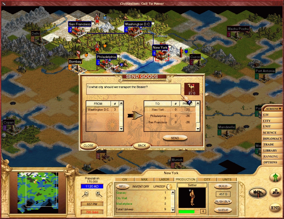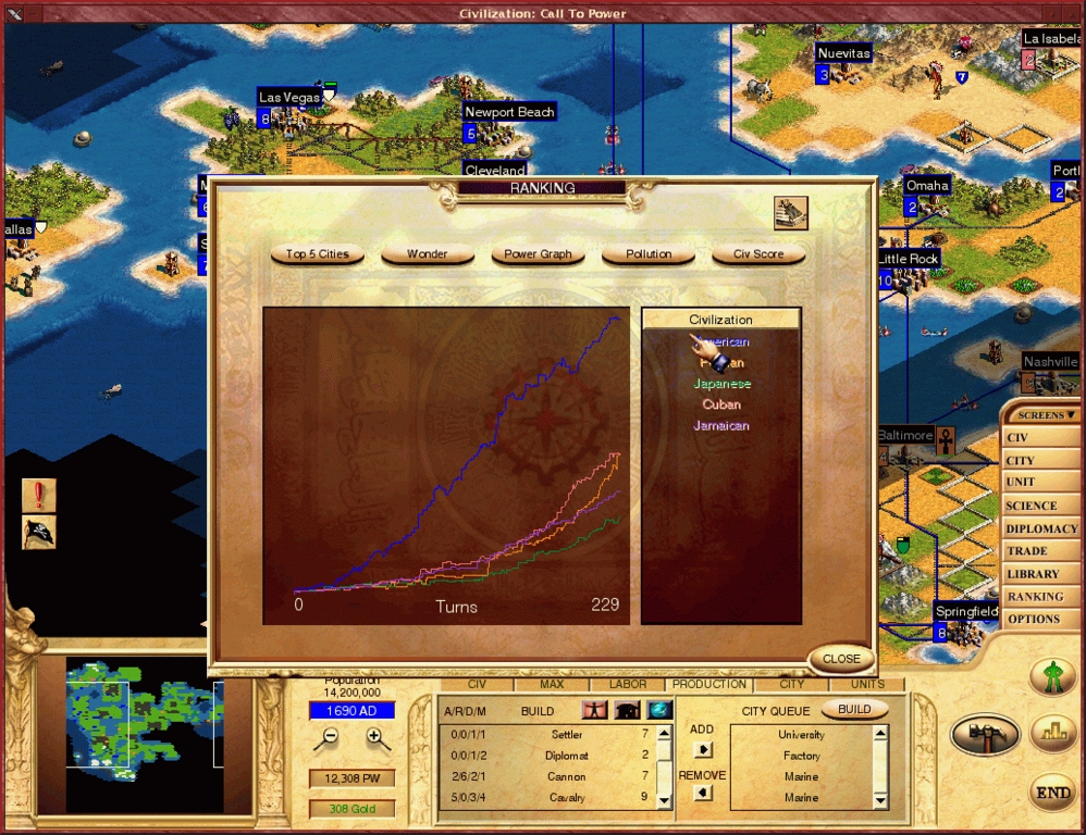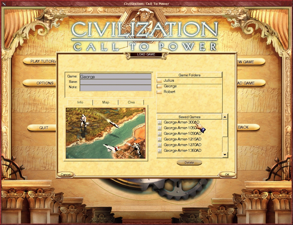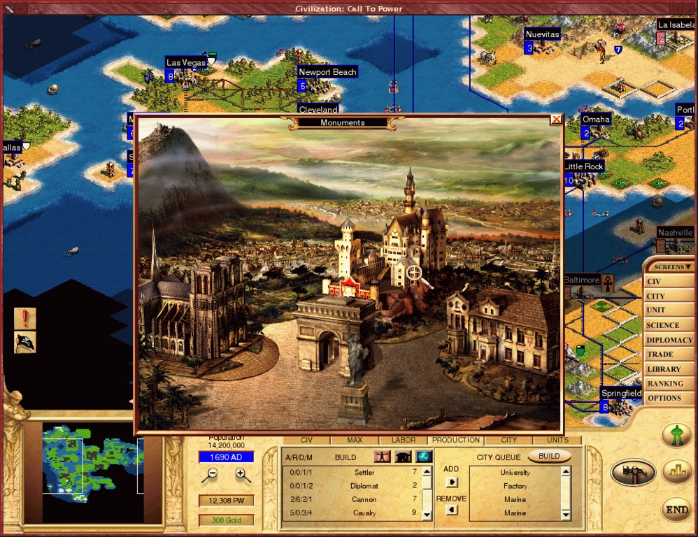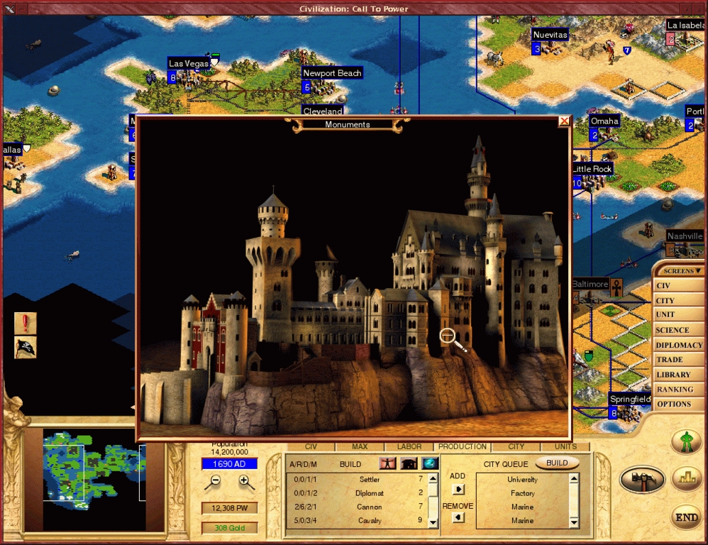 The sound of marching soldiers thunders through the cobbled streets as citizens bask in the glory of their triumphant leaders. No, this isn't a post-election day Republican fantasy, it is just one of many scenes from the animated movies which introduce you to the first award-winning, top-selling computer game to be ported and run natively under Linux—Civilization: Call To Power.
