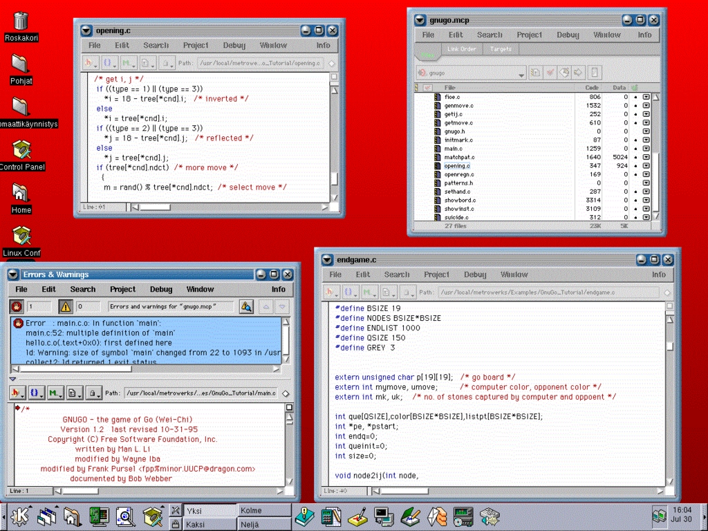 Many people have been waiting for years to see CodeWarrior show up for Linux, and for these people and anyone who likes integrated development environments in general (very popular on Windows), this resembles what they have been wanting. In terms of functionality, it is not yet entirely comparable to CodeWarrior for Macintosh or Windows, and limitations to the GNU Edition are present. However, many coders are excited to find out what future releases and the Professional Edition will have in store. You may also want to take a look at the open-source Code Crusader and Cygnus Code Fusion. Software development firms could become especially fond of an IDE like CodeWarrior, and if this problem of Makefile vs .mpc is resolved, it will become a viable option for individual, at-home developers who want to contribute to the GNU/Linux world of open-source software.