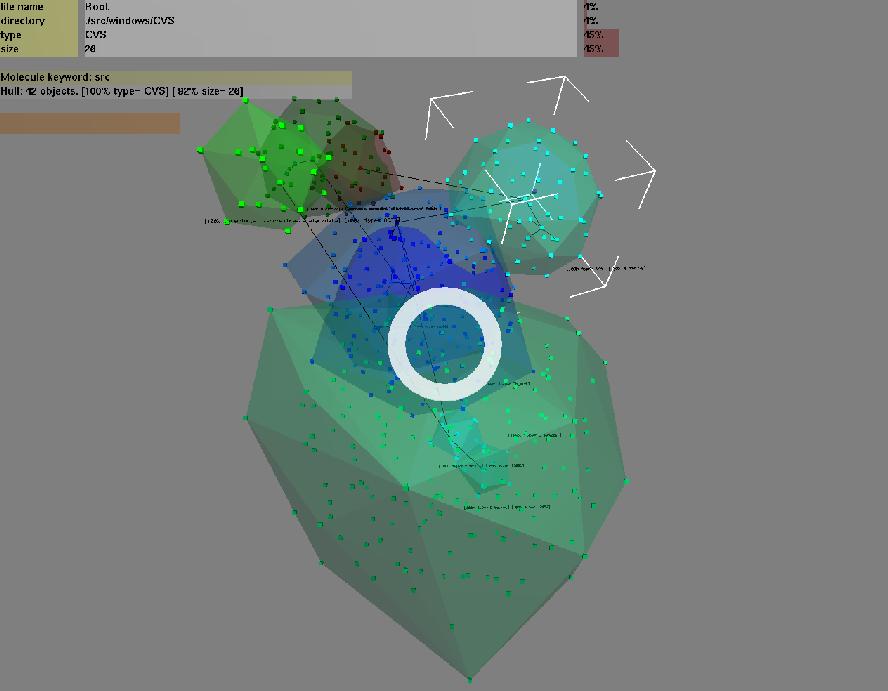 For the Oil Rig, the CAD application's native data structures (pipes, valves, walkways and so forth) are used in a similar way. When the application is called to render a tower, it can decide what would be an appropriate rendering for this frame—for example, it may decide to always render the tower, because it is an important landmark for navigation. Thus, the application can change representations dynamically to suit conditions. Similarly, applications with special lighting algorithms (see Figure 5), or atypical behaviours such as abstract information visualization (see Figure 6) use their own bespoke structures and algorithms to maintain real time performance.