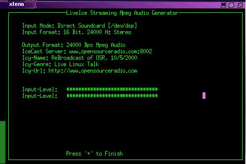We play MP3-encoded material during our radio show. LAME and Liveice convert the audio output to MP3-encoded specifications so anyone with xmms or Winamp can decode our signal. Broadcasting MP3-encoded material at this time does not require any licensing, however it is anticipated that in the year 2001 royalties will be collected by the agency holding the patent. You can obtain more information regarding these issues at www.mp3licensing.com. If the company that holds the patent imposes royalties, we plan to move to a different encode, decode schema. Ogg Vorbis is a patent and royalty-free compressed audio formatter that we anticipate moving our broadcast server to in the near future. Ogg Vorbis is available at www.xiph.org. Also, the MP3 licensing does not cover issues regarding broadcasting copyrighted material to a public audience so if you plan to run an Internet radio station, be certain you have permission to broadcast anything for which you do not hold the copyright.