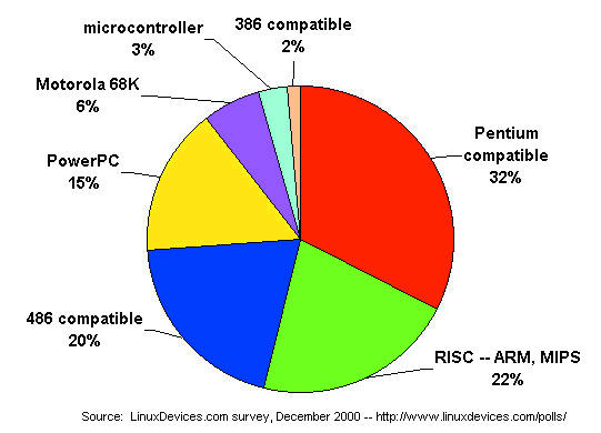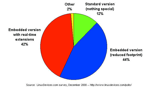 Here are three interesting results from LinuxDevices.com's 2000 survey of embedded Linux developers.