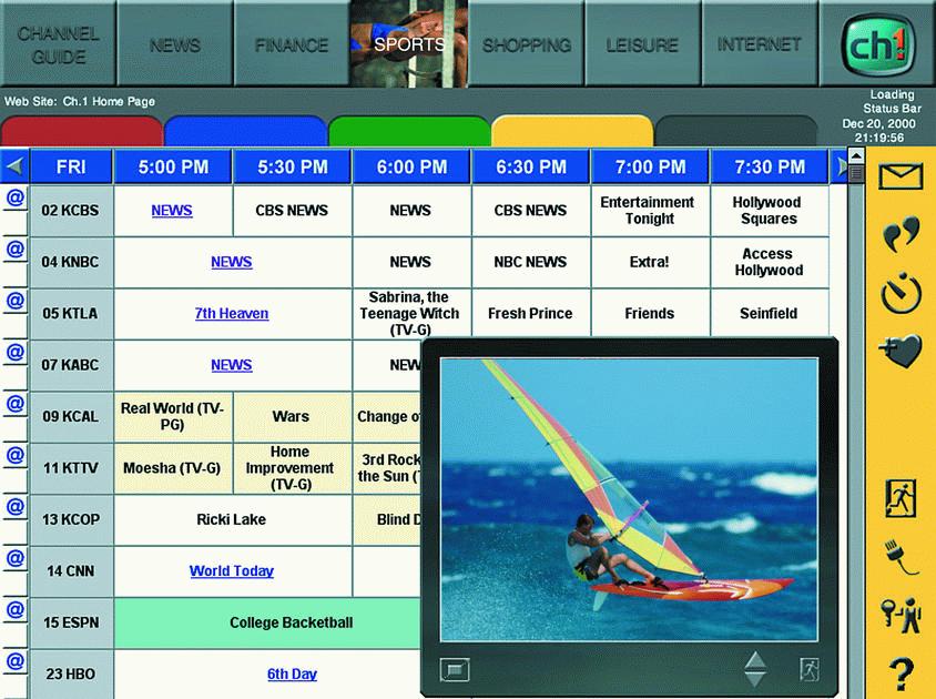 Ch.1 has written its own GUI toolkit and, besides web browsing, offers other internet services such as IMAP and POP e-mail, a channel guide, a Jabber-based instant-messaging client and on-line games. Other plans include an optional webcam, so when you're not watching your TV you can at least watch the people who are. "Ch.1 is a platform that brings IP (Internet Protocol) to television. It's really more than browsing the Web", Roque said.