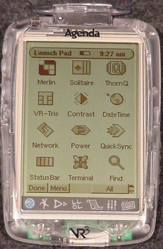 The VR3 has a back-lighting feature that, with it's clear case, provides an interesting spooky blue aura. It's similar to the new, low cost Palm m105. Unfortunately, both the Palm and the Agenda's back-lighted displays are really hard for me to read. The Agenda is a little worse than the Palm on this matter.