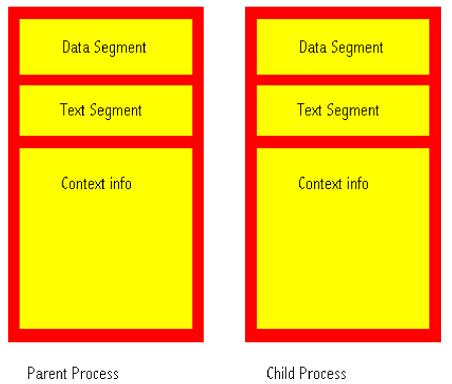 As you can see, the child is in a totally new address space. Within this address space, the child process receives a copy of everything the parent had at the point of forking. (This isn't exactly true in Linux. The child only receives a new copy of a memory page when it tries to make a change to something in that page. Until then, it simply uses the parent's copy. This is called copy-on-write memory management.) Changes to this copy do not affect the parent. When the child tries to change the value of the variable, the parent doesn't see this change.