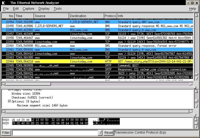 Ethereal is another of those programs that requires the libpcap packet capture libraries. We've talked about this one before, most recently in the third part of this series. If you don't already have it, check out the libpcap web site at http://www.tcpdump.org. You'll also need GTK+ (likely to be already installed on your system). GTK+ is available from http://www.gtk.org.