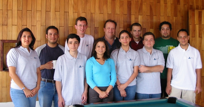 Back row from left to right: Geraldy Castillo, Esteban Barrientos (Pato), Alfredo Delgado (Alf), Andreas Leimer (Andy), Alberto Brealey (Beto) and Paulo Campos. Front row: Randall Aguilar, Vera Sanchez, Alina Castro, Agustin Guevara and Federico Figueroa (Fede).