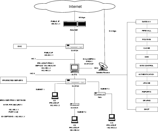 From that we developed using it as a proxy, adding routing, subnets and control reports. The control aspect of it was nice because they were tired of the sales department going to the wrong sites. You know, XXX sites, whatever. And they wanted to account for it, saying “hey, stop doing this.” If they wouldn't stop, then they actually would deny those sites. So that was one of the programs that we wrote, what we called our control program, I guess. It has three different levels: unlimited use, denied sites and allowed sites.