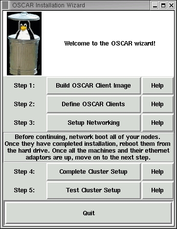 The original idea for OSCAR came about over dinner at a DOE-sponsored cluster meeting at Argonne National Lab, where Dr. Timothy Mattson, a research scientist at Intel, and Dr. Stephen Scott, a research scientist at Oak Ridge National Lab, discussed the problem of getting Linux clusters accepted into the mainstream. The problem, they decided, was that it was just too difficult for noncomputer programmers to assemble their own cluster. Books like How to Build a Beowulf (Sterling, et. al.) would help the computer savvy understand the concepts and construct his or her first cluster, but there were still daunting problems. There was an enormous amount of code to download, all at differing levels of reliability, support, integration and documentation. Sometimes the documentation for various packages was dated and contradictory. There were many Linux distributions to choose from, each trying to distinguish themselves by being slightly different from the next distribution. This meant that some commands worked differently or that different packages had to be installed to get a service to work properly.
