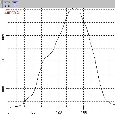 A real-time plot of Zenith Si instrument spectrometer data: the plot shows the spectral intensities of a light source, in this case, a handheld flashlight. The system allows real-time plotting of data from all instruments simultaneously.