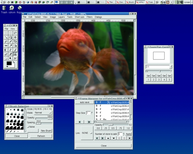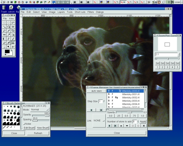 The GIMP probably leads any list of killer applications for Linux. This Photoshop-like graphics package is very popular for retouching still images. However, fewer people are aware of its motion picture cousin called Film GIMP, intended for working on a series of images.