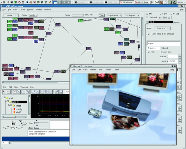 As is typical with production studios, R&H uses not just one tool but a pipeline of tools for 3-D animation and live-action special effects. Before looking at Film GIMP, let's examine some of the proprietary tools in the production pipeline that Film GIMP must seamlessly interact with.