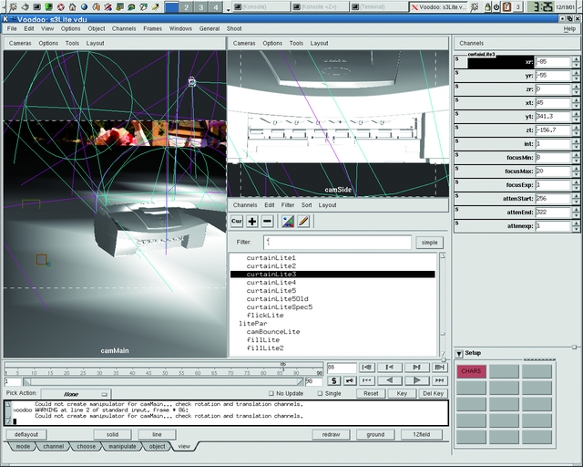 Lighting TD Greg Yepes uses internally created lighting tool Voodoo on projects such as Harry Potter or Canon printer commercials. “When setting up lighting for 3-D objects composited into a scene I'll initially set my virtual lights to an extreme value so I easily can see what I'm doing”, says Yepes. “Later it will go into Wren with more subdued values.” Similar to RenderMan, the Wren software is their internal rendering engine ported to Linux a year ago. “All the apps have gotten ported faster than we had thought”, says Yepes. “I started with DEC Alphas on Cats & Dogs, then the Intel PCs came on-line and really saved us.”