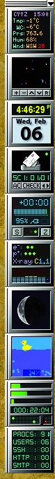 On my own desktop, I run weather applications, clocks, graphical do-nothings, power monitors, moon, sun and space weather monitors—all these in addition to classic system resource monitors. The design of these little programs means they take up very little of your precious desktop space. Thank you once again, mes amis. Your visit to Chez Marcel is always a pleasure. Until next month. A votre santé! Bon appétit!