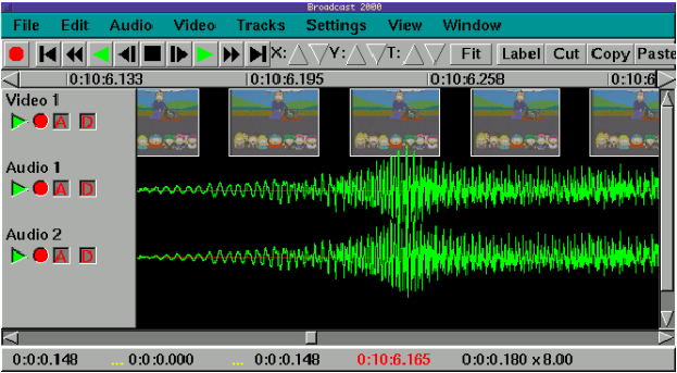 Once I had digital video on my computer, editing it was the next step. Broadcast 2000 (MandrakeSoft produces an RPM called bcast-2000c) is a GPLed nonlinear video editor [see “Movie Making on a Linux Box?”, LJ January 2001 and “NLE Video Editors”, LJ February 2002]. With it, one can manipulate audio and video tracks. A screenshot of Broadcast 2000 may be seen in Figure 1. SuSE has a pretty good guide to Broadcast 2000. Cinelerra, best for users competent in compiling development-quality code, can be found on SourceForge and is the up and coming successor to Broadcast 2000. Both of these tools work with the QuickTime output from xawtv.
