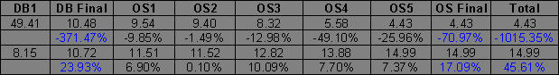 Not quite what we had hoped for; only a 1.73% improvement in load time and a 10.88% increase in TPS. Okay, so maybe we should have increased the SGA redo log as well. Of course, we don't want the redo log file to be smaller than the SGA memory allocation, so we'll need to bump up the redo log file size to match. This is shown in table DB3.