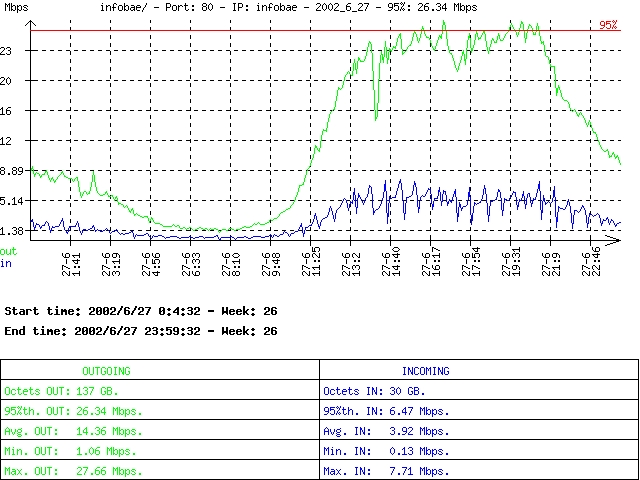 netflow_graph.pl gets data from a single table and draws a chart for that information. It draws a green line for output and a blue line for input, scaling Y and X axes accordingly. It adds a legend to the graph that contains basic reference data and the 95th percentile information.